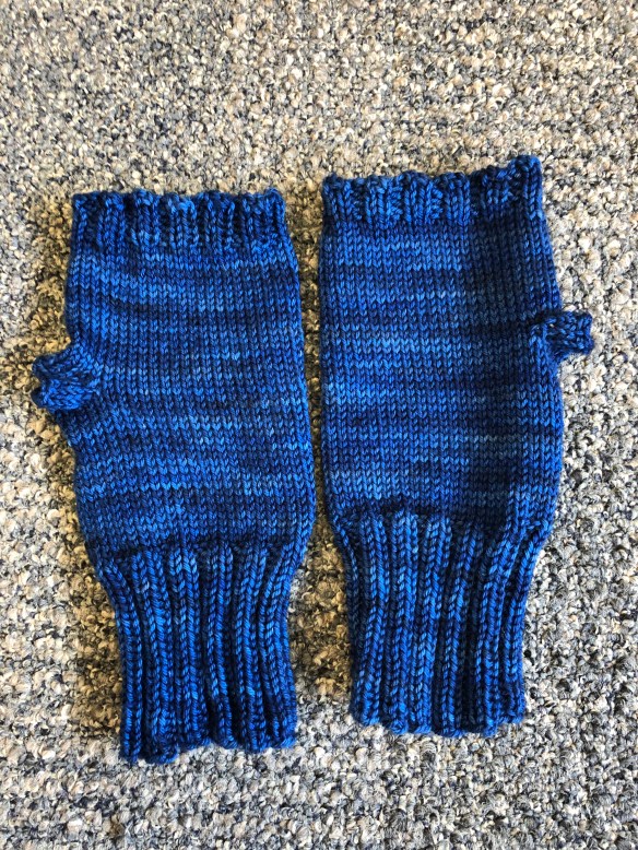 As predicted the fit is pretty baggy. But they don’t fall off so I’m calling it a win. I used 125 yards or roughly 65 grams of yarn for these two mitts. I knit the first one to pattern measurements and then I knit the second one by counting the rows in the first one. I felt pretty smart doing that. They ended up almost identical!