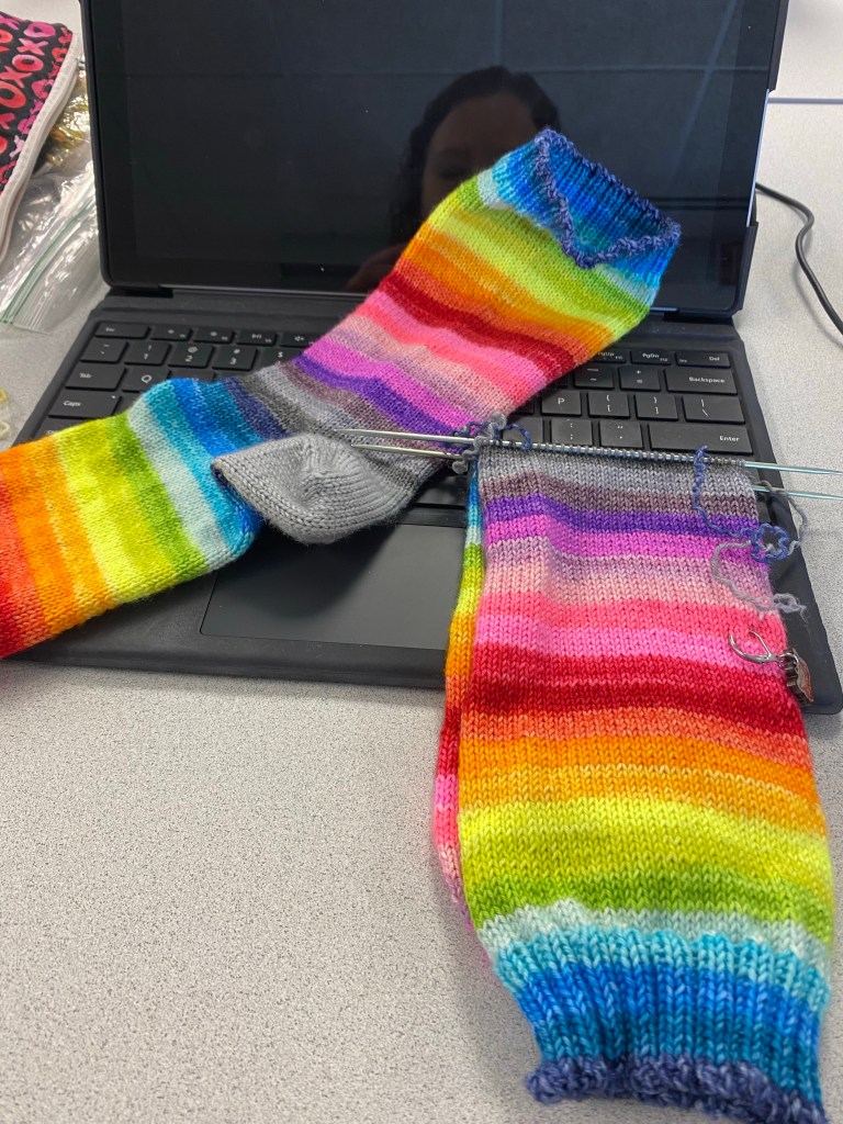 Mods: I upped my stitch count from 68 to 72 and probably didn’t need to. There is very little negative ease and the heels came out loose/big. But they are serviceable enough.