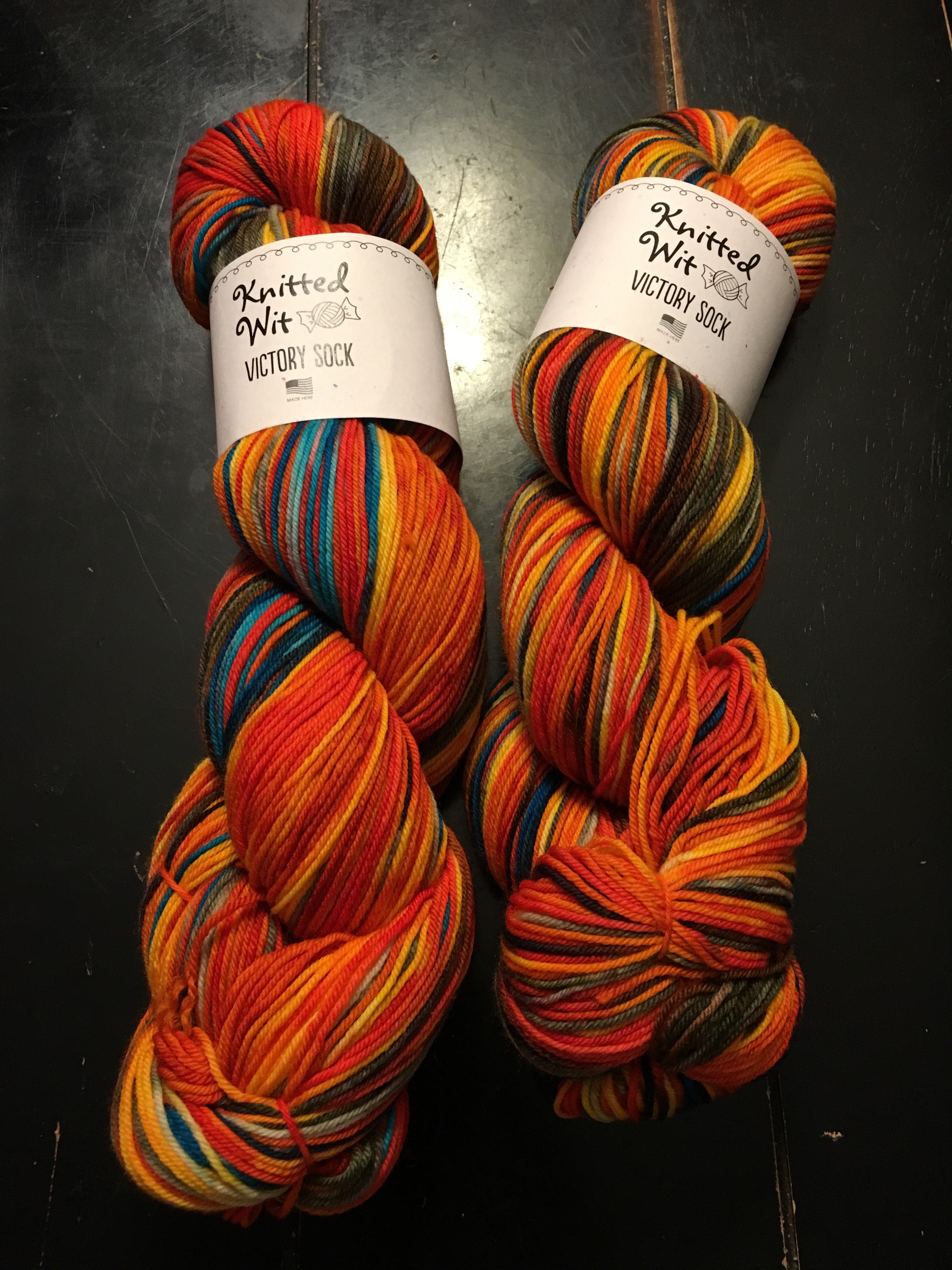 In total with the self striping and the contrast heel, the socks weigh 75 grams and used about 280 yards of yarn. The mini skein had a teeny tiny ball left but was almost completely used up.