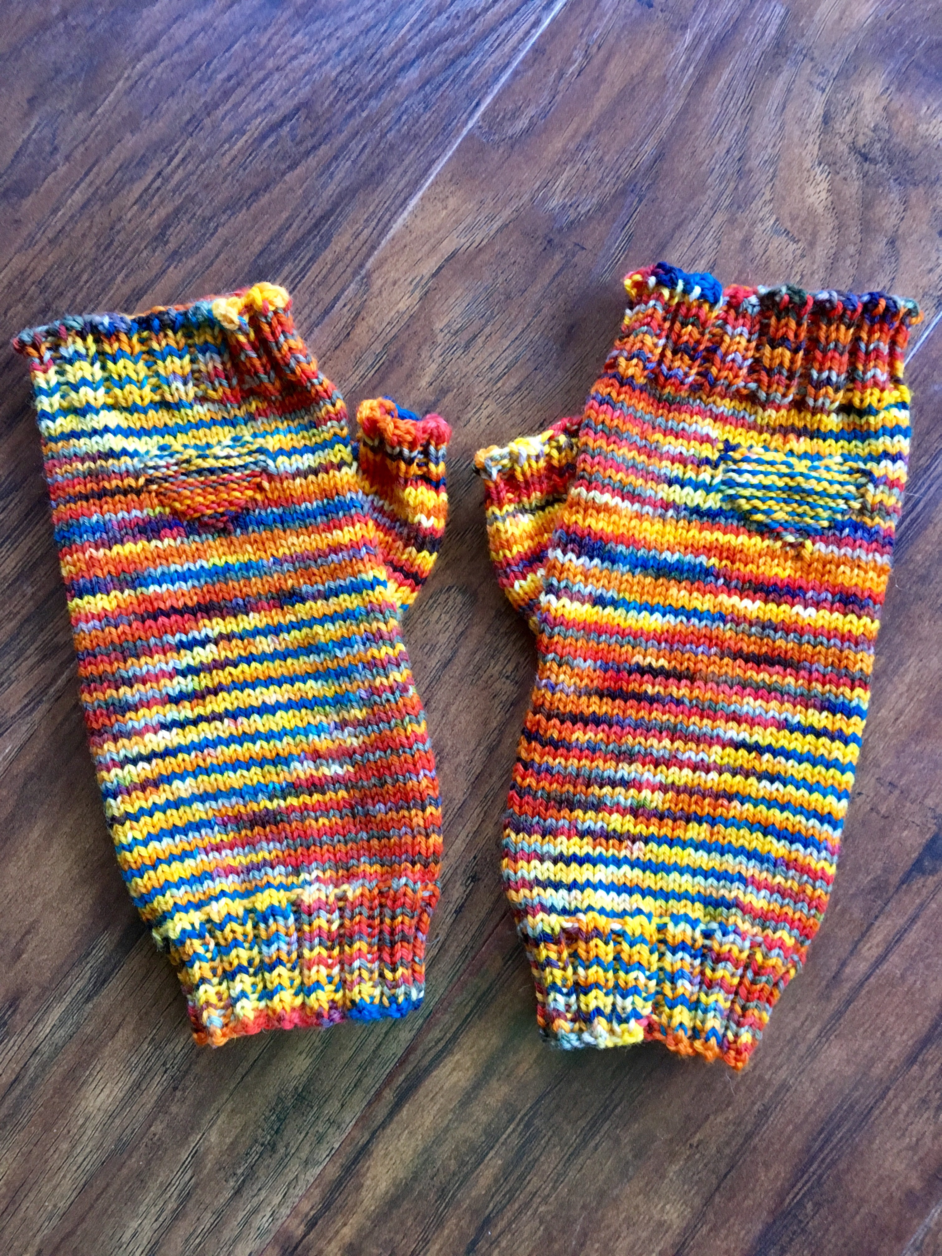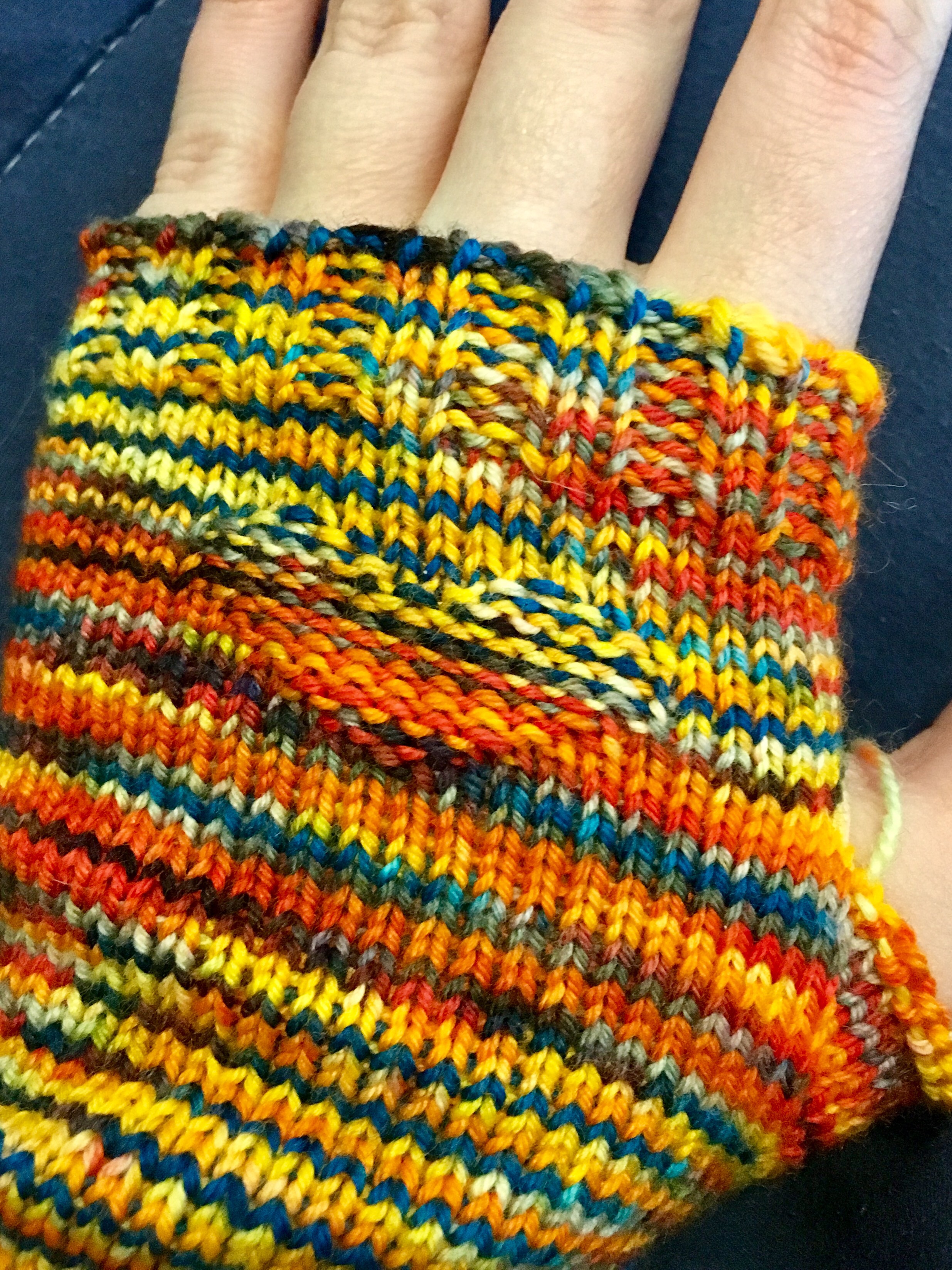 Working these toe up means I have used up every last inch of this beautiful self striping. And I got the full rainbow in before casting off. The ribbing could have been started soon but it’s close enough.