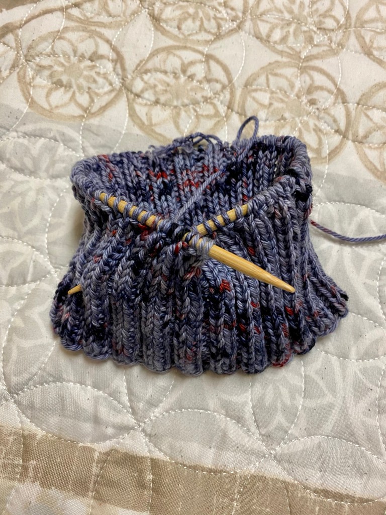 I’m already almost all the way through the ribbing and ready to start the stockinette section. I did my same 88 stitches on size US8 needles “recipe” for all my recent hats. I do plan to flick the stockinette portion so I’m hoping this is a quick knit. I’d like to get some the Shepherd’s Mill yarn on the needles as well.