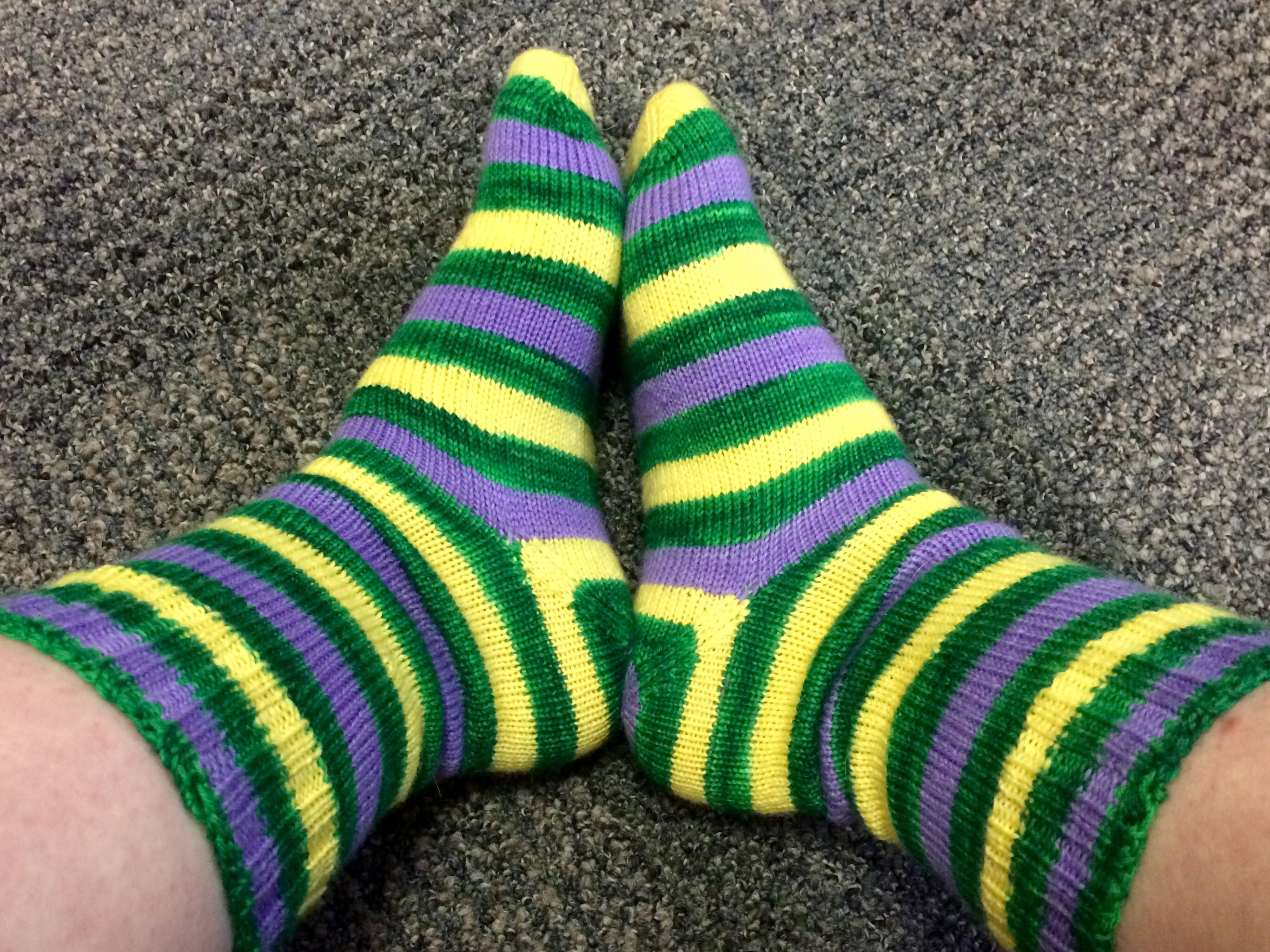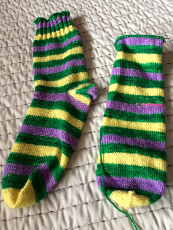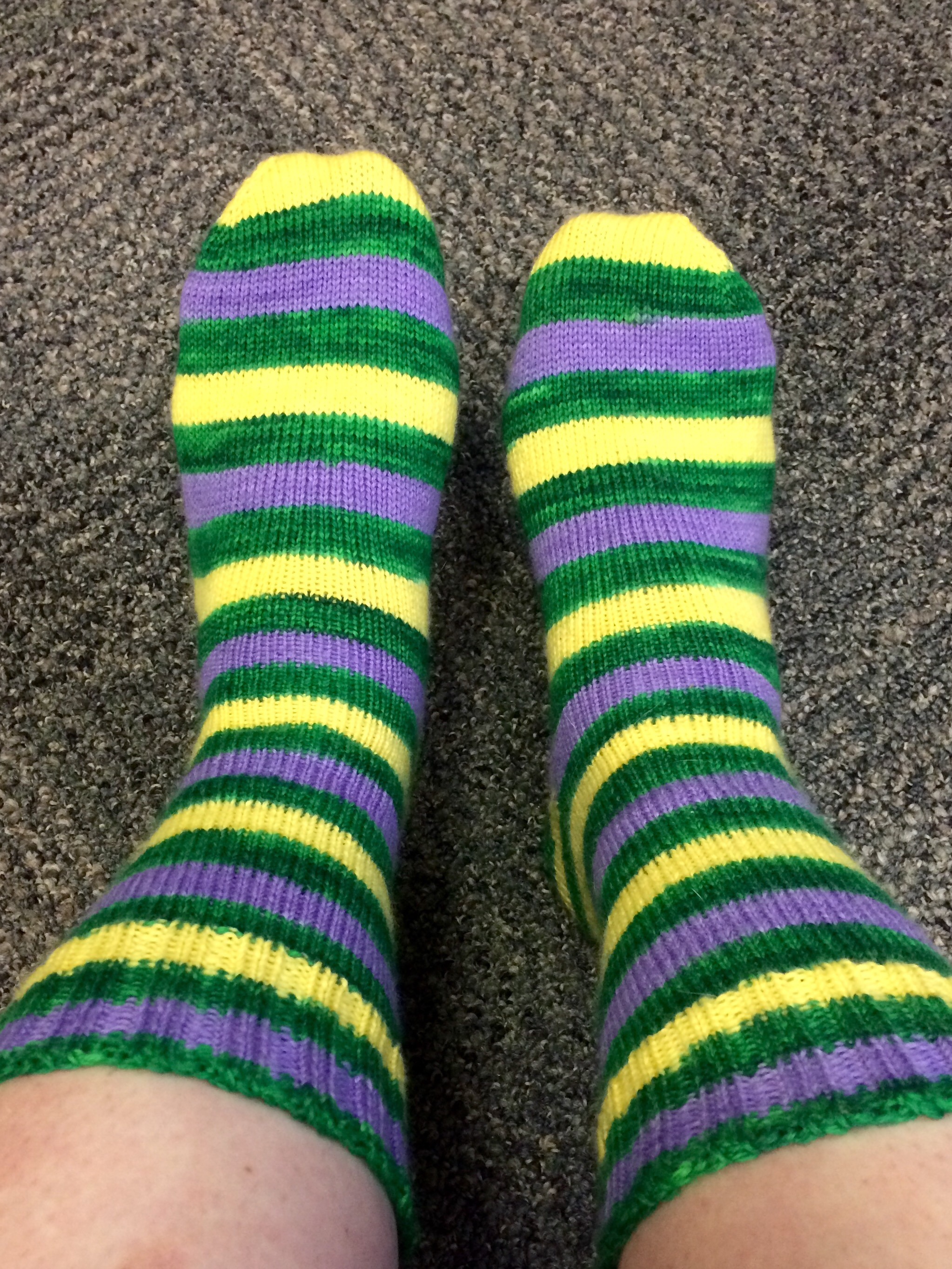 These were part of my 2016 sock yarn experiment. I really enjoyed this yarn. The colors really popped and the fiber content of merino/cashmere/nylon was just buttery under my fingers! I will totally use this yarn again. And best of all…my stripes match!! I got a little off on the second heel but it’s still very close.