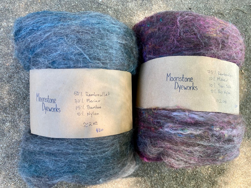 My indie dyer obsession with Moonstone Dyeworks continues. She got a drum carder and now makes batts to sell.