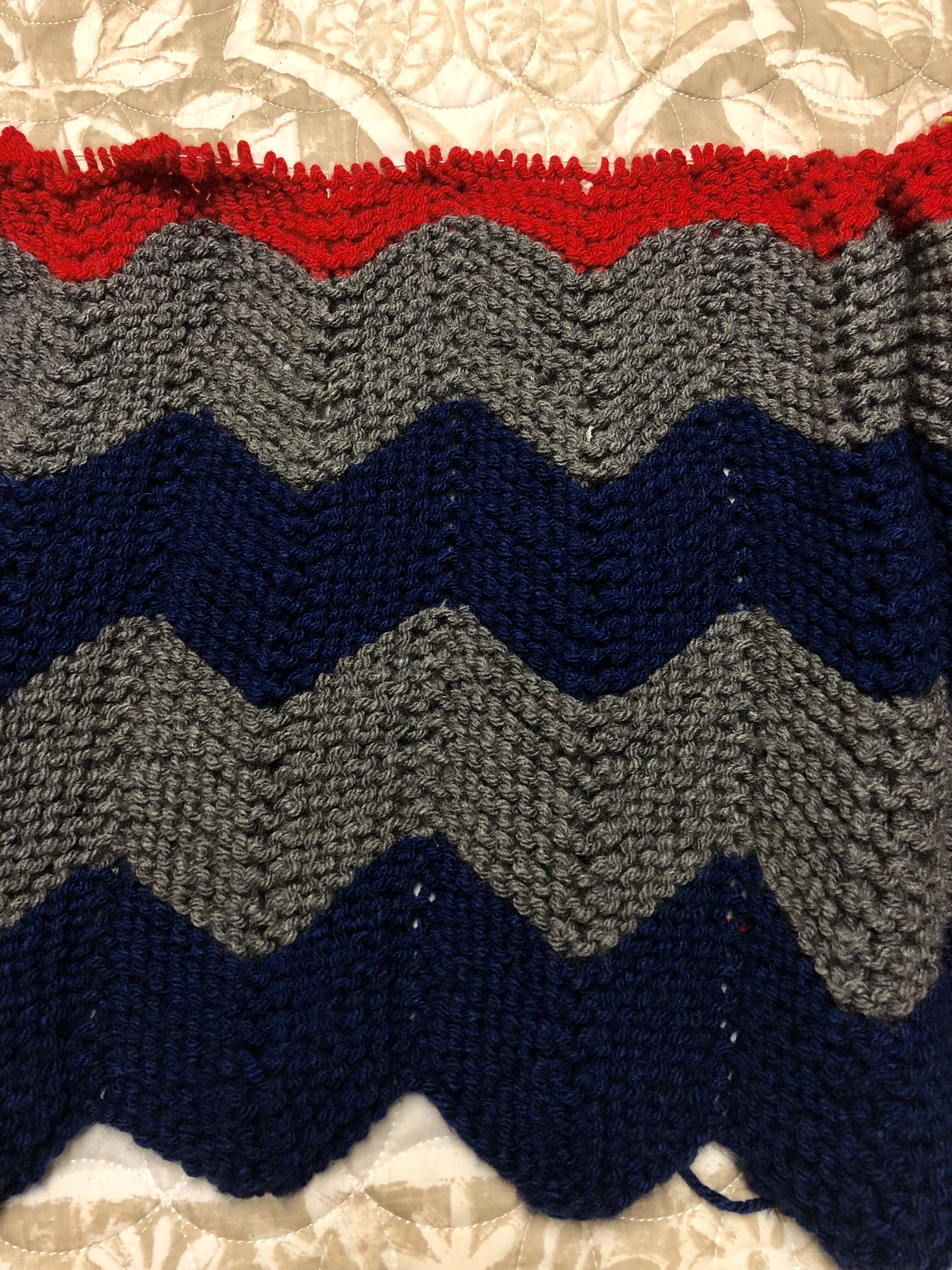 My hands do get tired working on this large of needle and yarn. So I will probably work this one in bits and pieces to avoid injury. But I’m really pleased with the pattern so far and how the yarn is knitting up! And it’s been awhile since I had to work a chevron. It’s been nice dusting that off!