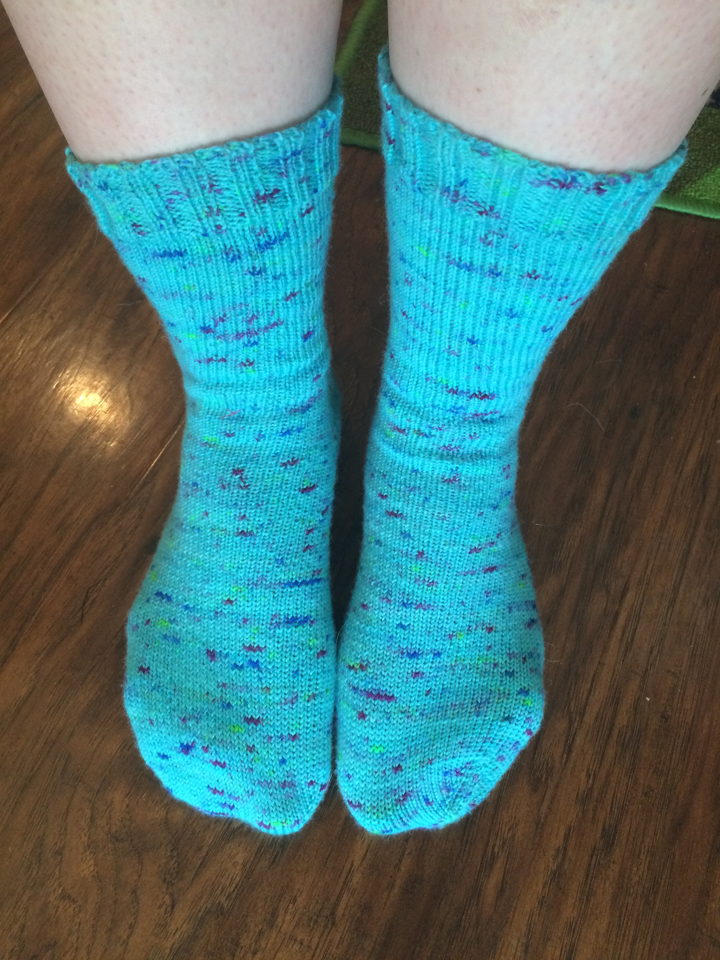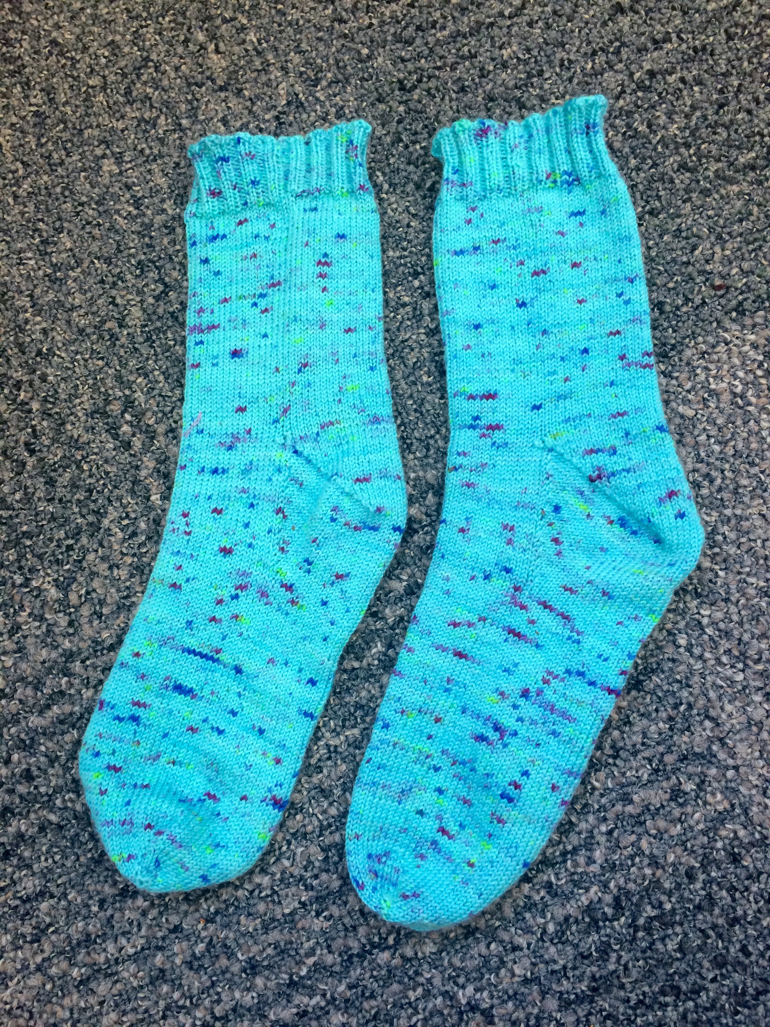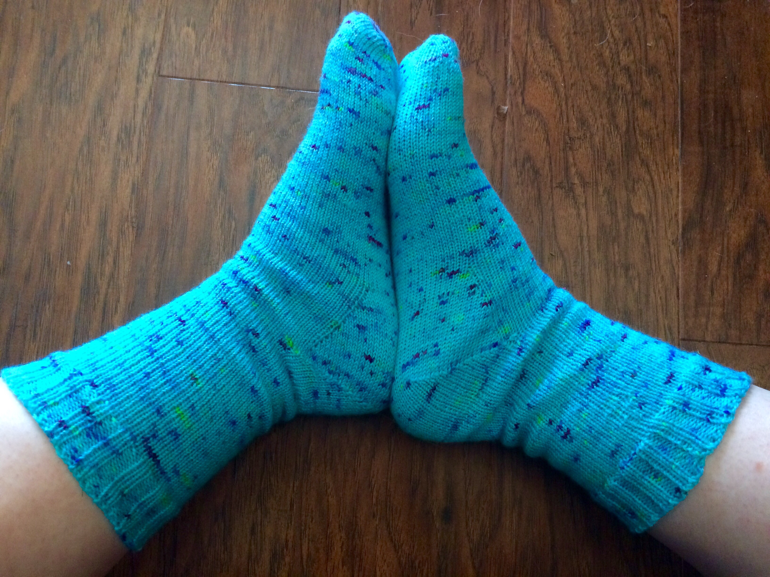 My Party Cake Peep socks are knit and ends woven in! I really only had to finish one leg and a tiny bit of monagamy helped to finish these.
