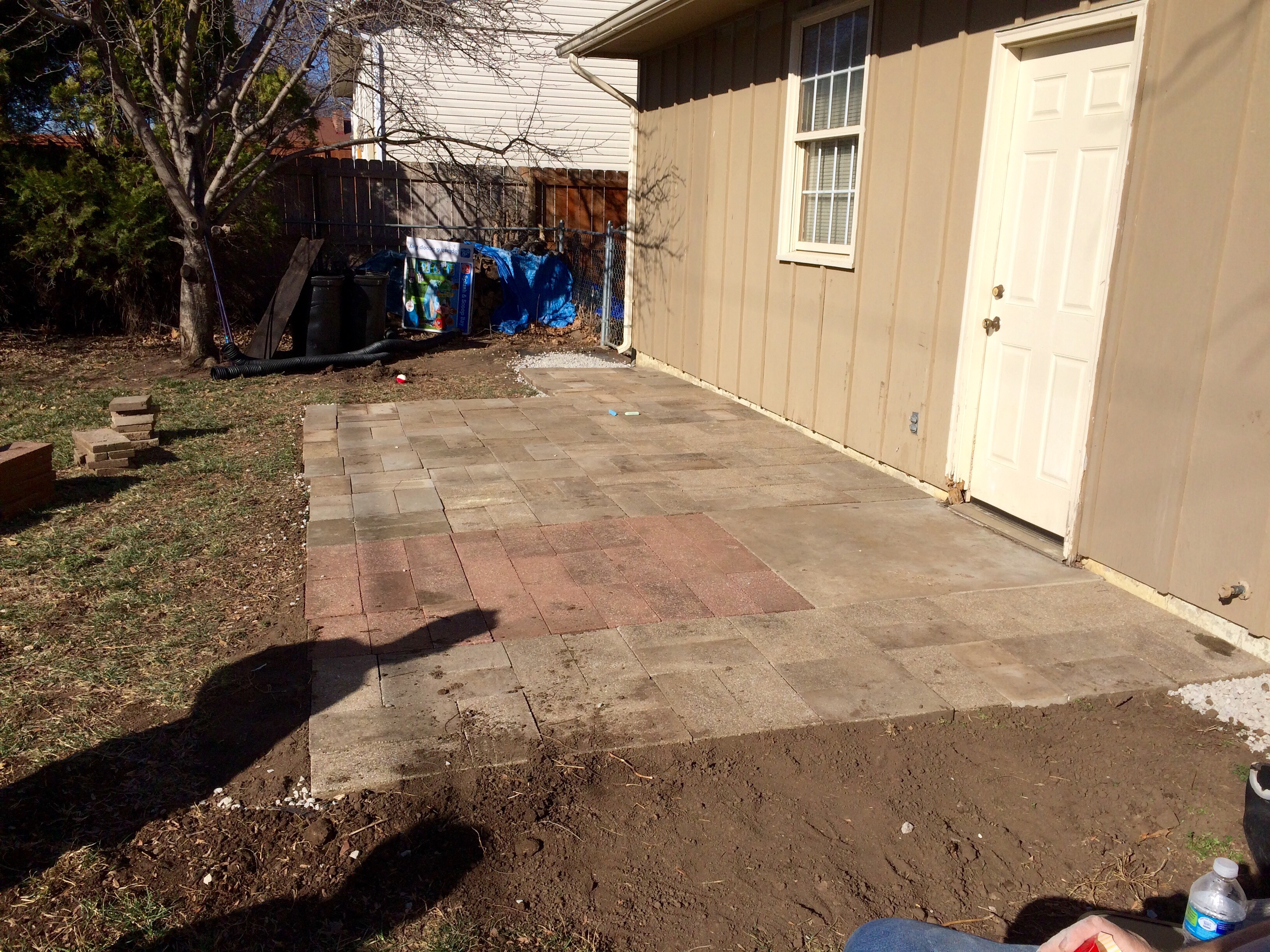 Now that the summer sweltering has eased, I finally kicked my patio project into high gear. And I am super happy with the results. I spend many of a pleasant morning drinking coffee and knitting in the cool shade.