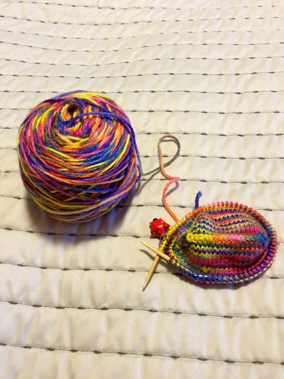 My one complaint is about the yarn. This is my second go with this brand. And I learned the hard way that their dye has a tendency to run. A pair of socks I knit bled the purple or blue dye and completely dulled the whole sock! I contacted the company twice about the yarn and received ZERO feedback. I was disappointed. I wasn’t going to buy their yarn again but I got this DK skein on super clearance at a yarn store closing.