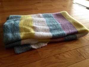 But I have always wanted to do something for Project Linus. A simple blanket is a great way to learn to knit and giving a child the comfort of a homemade blanket is priceless. I thought the One Row Blanket de la Harlot would be great because its a one row pattern of 4 stitches repeated over and over. Not to mention its big yarn on big needles!