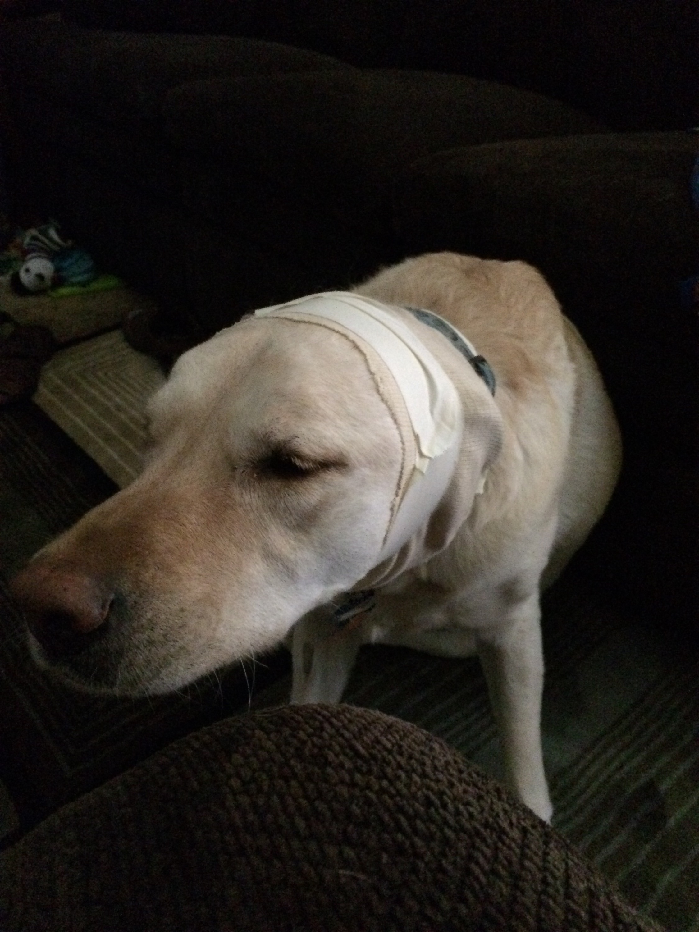 (This is Dex’s sad face because he can’t go for walks or play Frisbee for a week)
