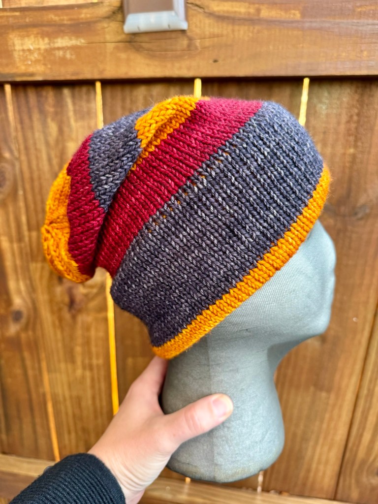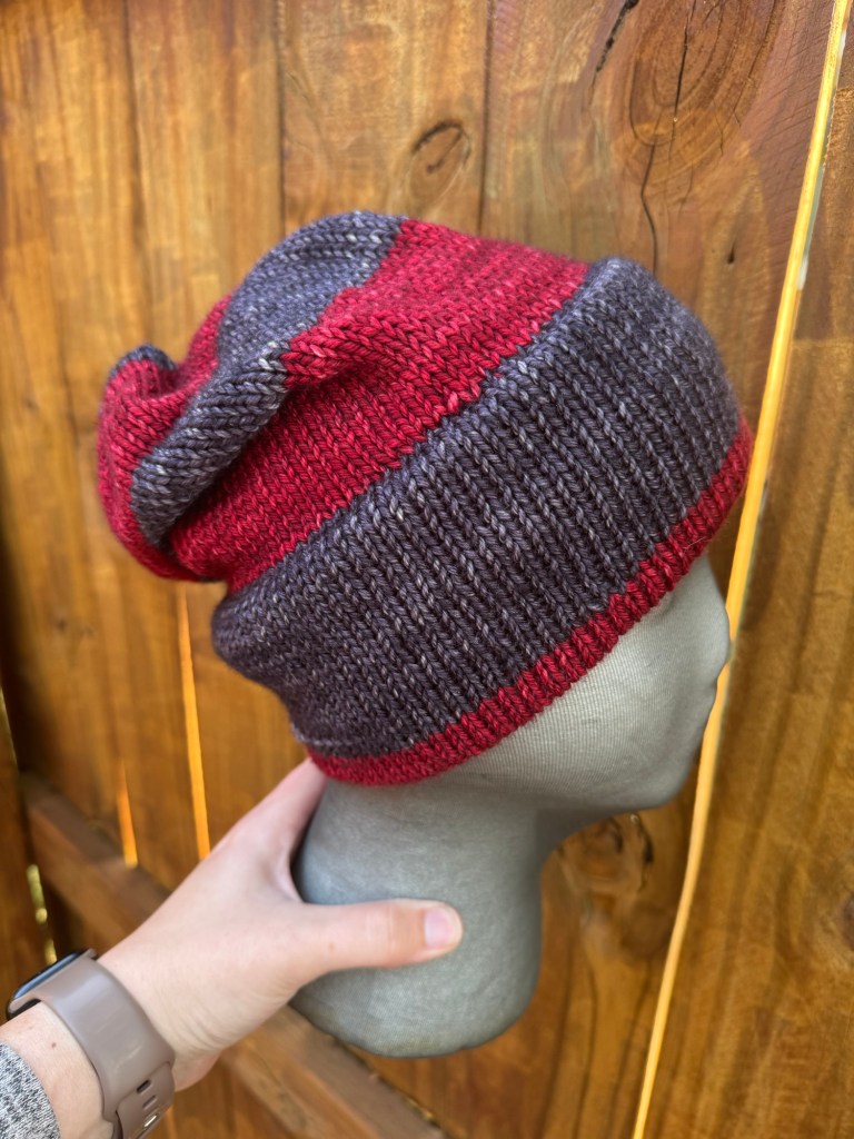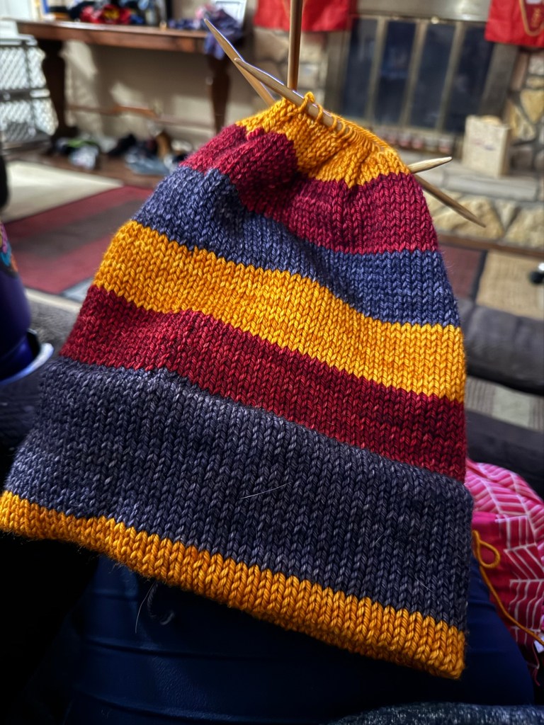 This is going to be my basic 88 stitch basic beanie because I need this to be super mindless. I got myself cast on and started in the round (without twisting) and into a project. I noticed that this color of Rios is SUPER close the color of my blue jeans, lol.