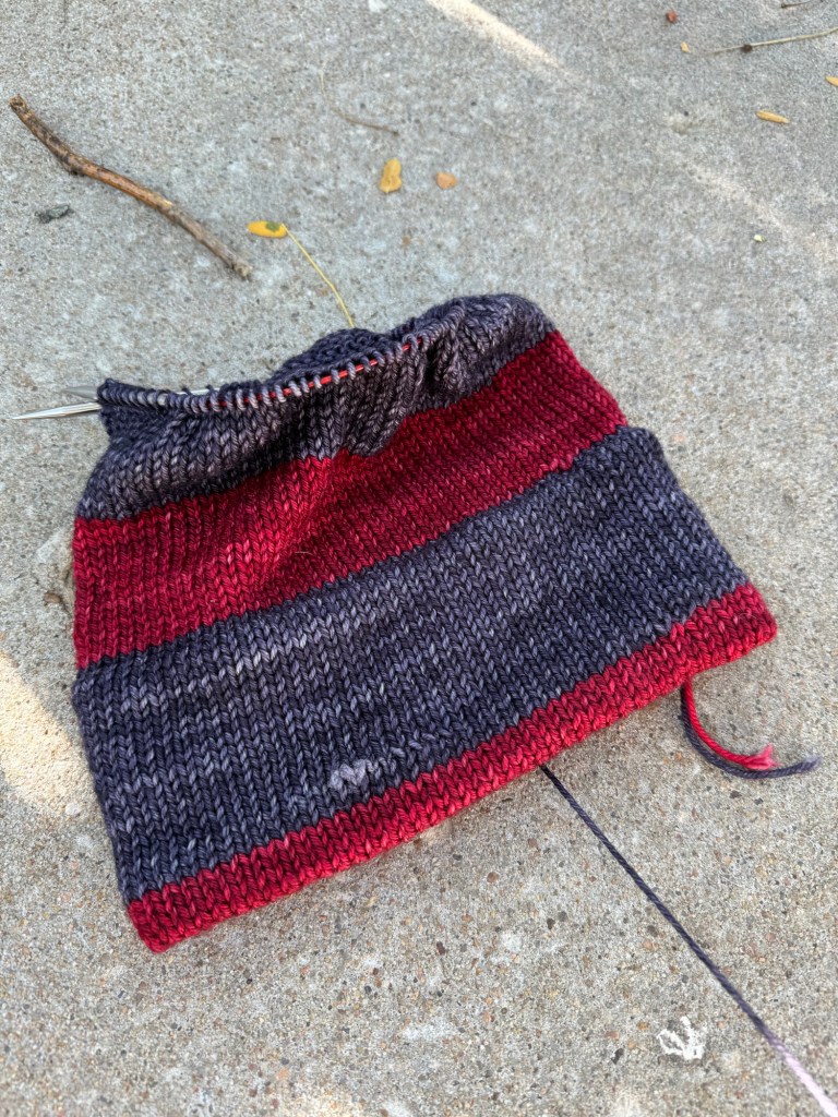 This weekend is all about the cast-on-itis and I used football game watching to start another hat brim. I managed to get the full brim knit over two games and get everything turned/connected.