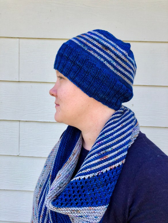 Mods: I did not work the double cuff and I knit the hat portion according to how much yarn I had. I really just used this wonderful pattern for stitch counts and crown decreases