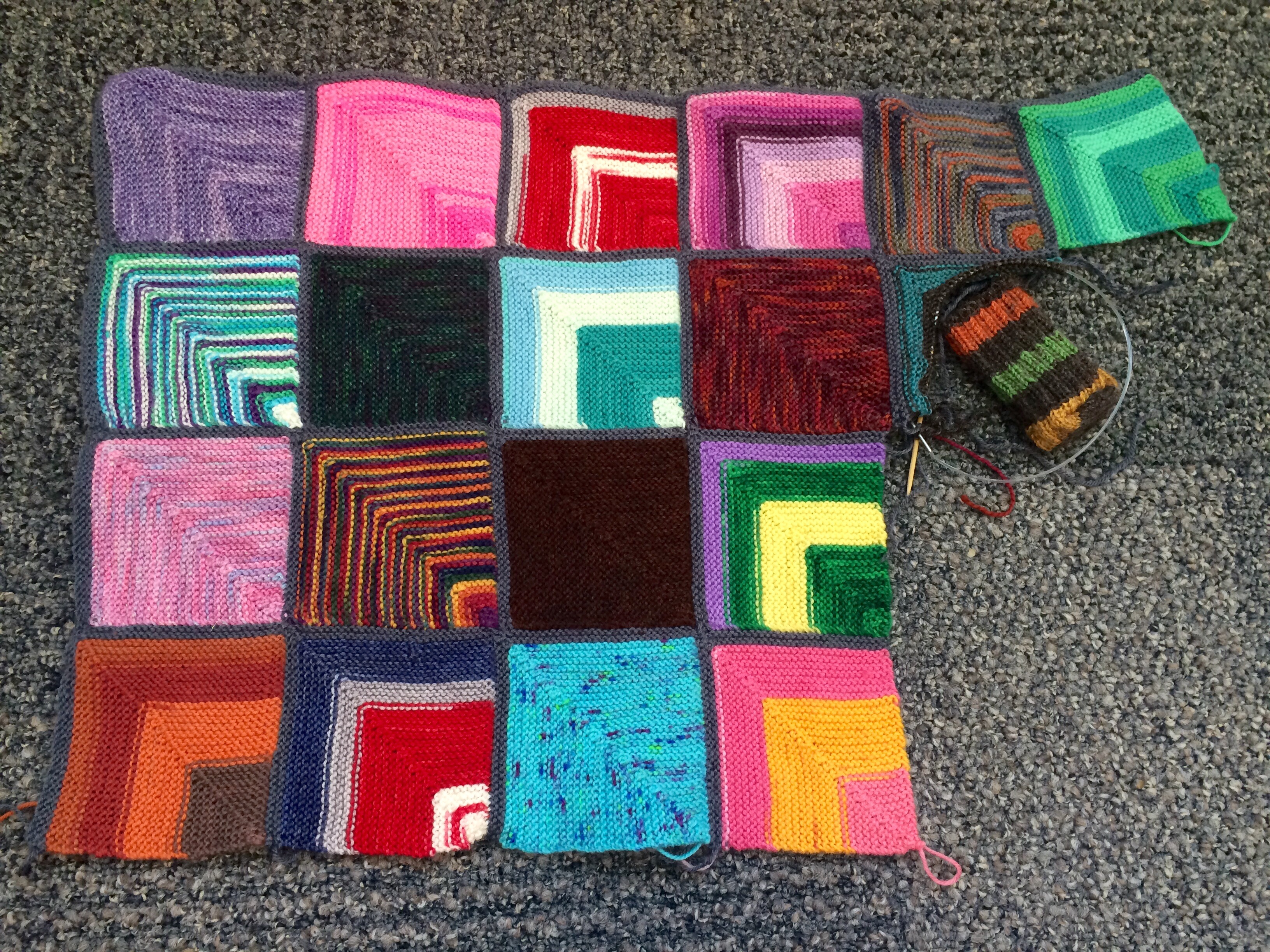 I’m on the 19th square with no signs of slowing. I still have several scraps but my pile is shrinking. I may dip into my yarn stash to make a few mini skeins even before I knit the socks. I never use all the yarn anyway so that’s not crazy at all right? I just want to ride this wave of motivation before I lose it.