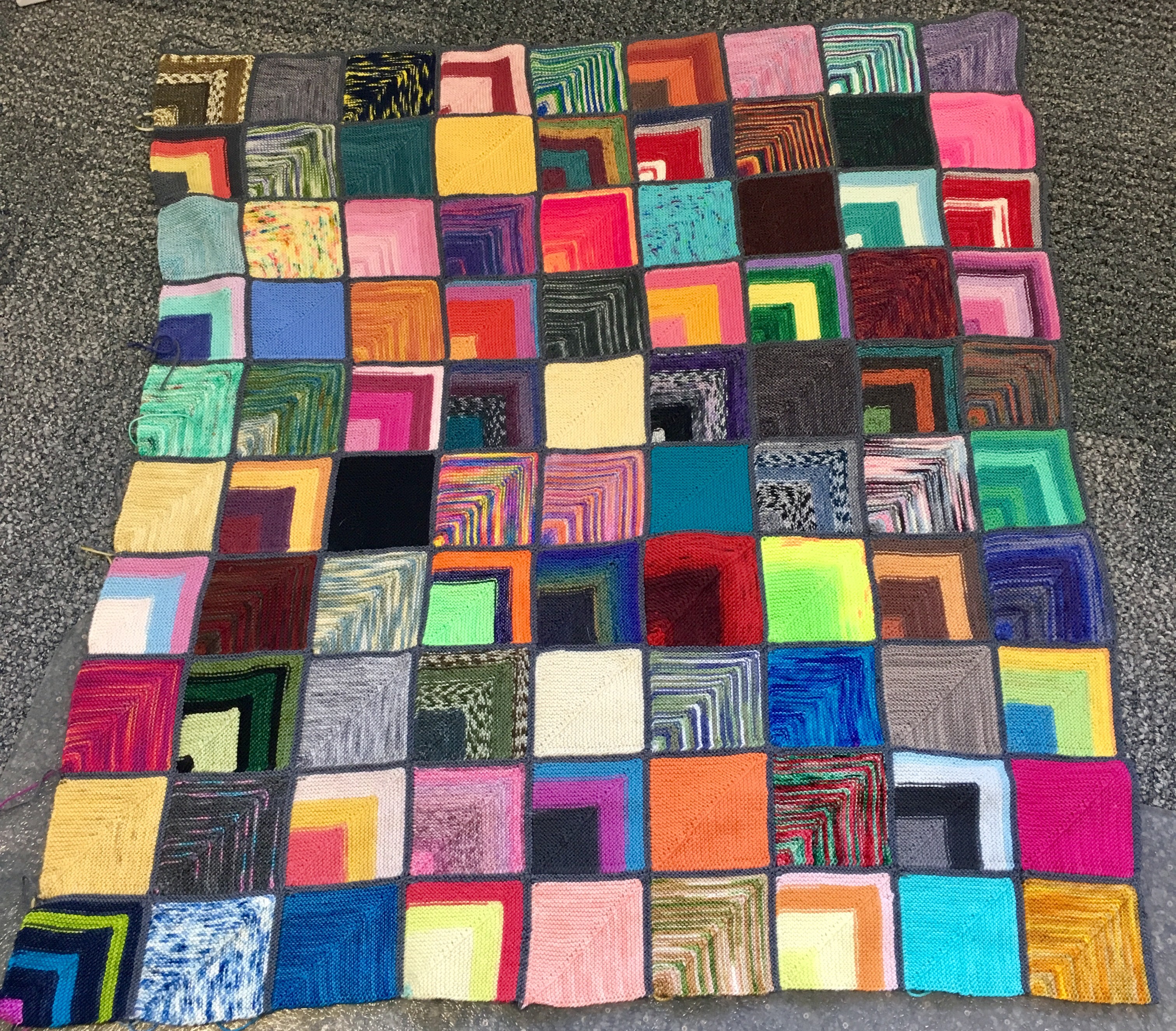 My Memory Blanket has been quietly hibernating for over a month. I needed just one more square to finish a row. I thought my Antimuon yarn would be a perfect fit…