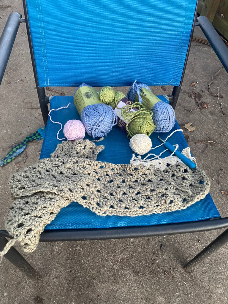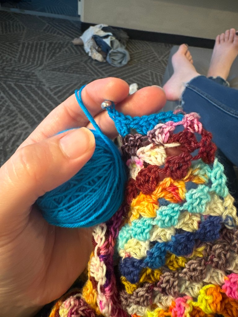 I have added much since I last picked it up. But perhaps my method of resting with warm tea and Duke snuggles I can add length to this. Happy Crochet and stay healthy!!