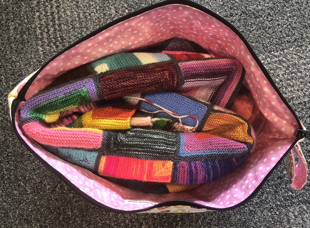 I am still riding the wave of accomplishment from finishing my scrappy DK Hibernation Throw last week. I was cleaning up the project bag it had been living in to put the needles and notions away and noticed how small the pile of scraps were at the bottom of the bag. When I started I had two gallon sized ziplock bags full of scraps and a CONE of undyed sock yarn. Now I’m left with two quart sized bags and one sandwich sized bag of scraps that don’t have a plan.
