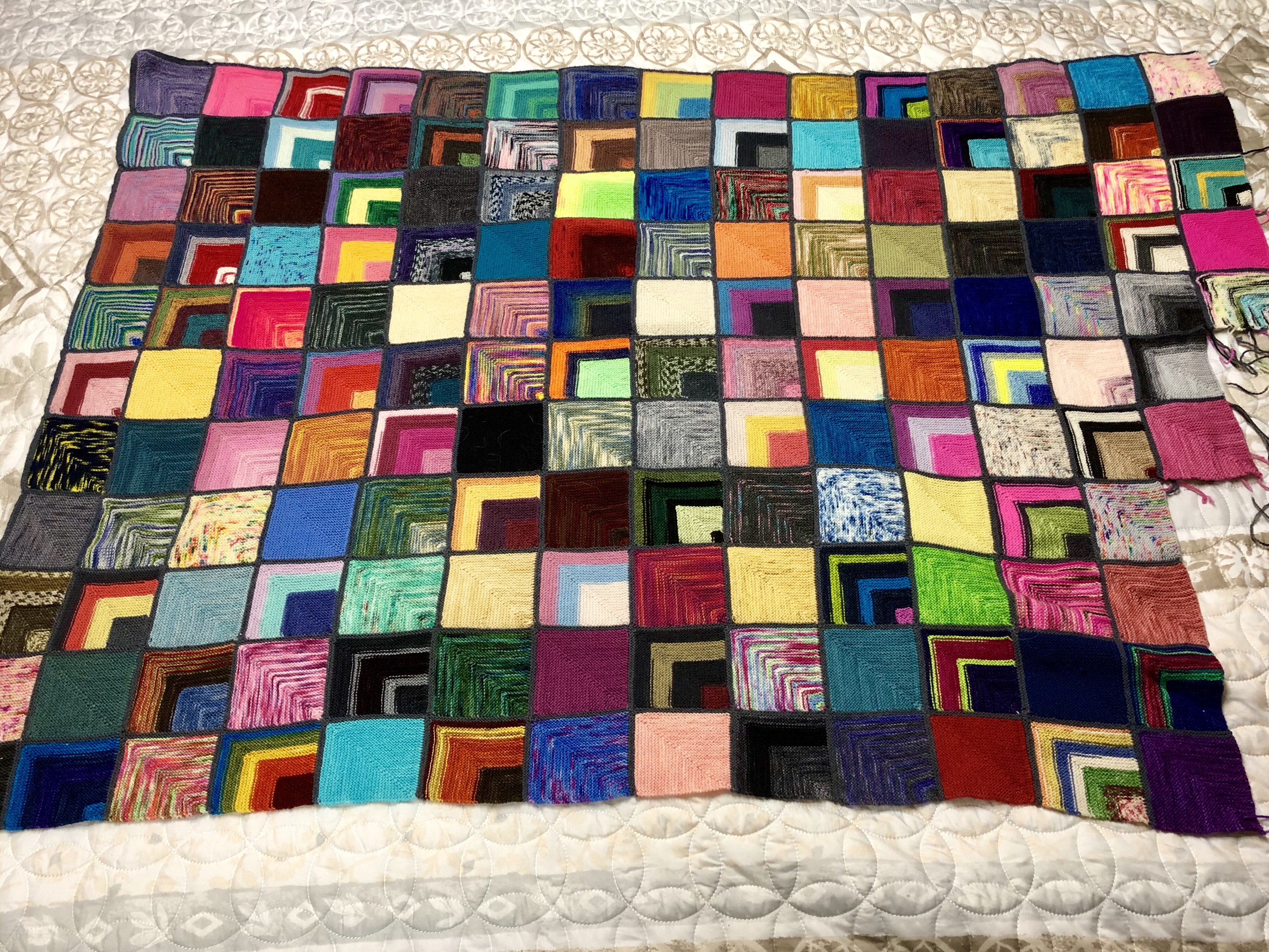 I haven’t touched this in awhile and I kind of forgot how beautiful this blanket is. I have an itch to work on this, but it won’t earn me any points in the