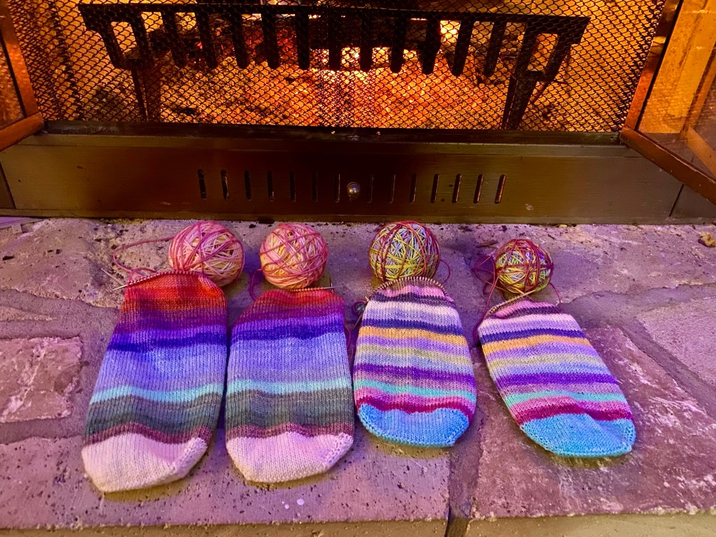 I made it to Christmas Eve and all 24 stripes on each of my advent socks. I was smart and worked ahead and added the heels a few days before Christmas. Now they just need cuffs!