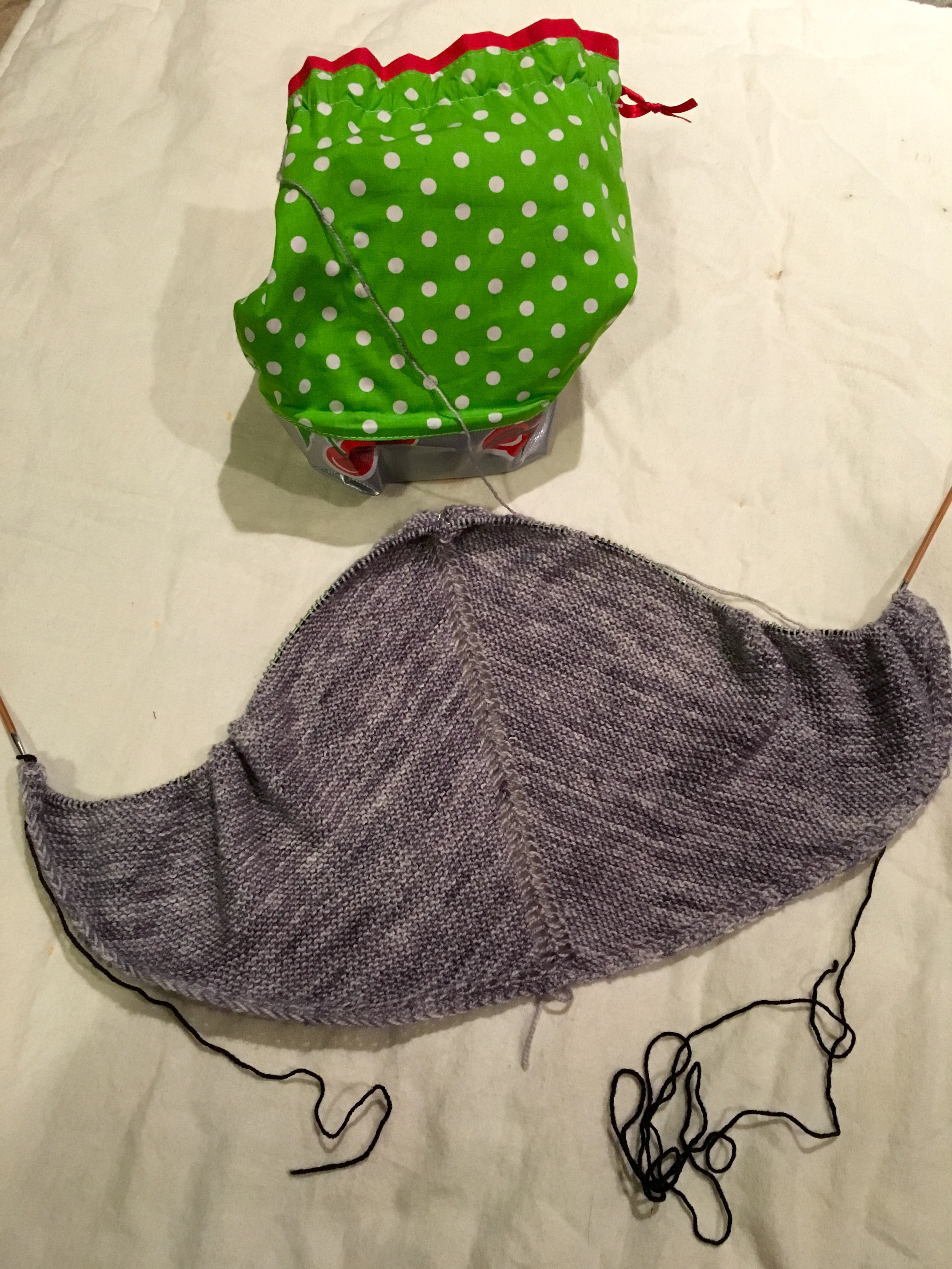 I keep finding my thoughts drifting to the Merino DK I have in stash from Hedgehog Fibers. I have roughly 650 yards between my grey and blue colorways. I REALLY want this to grow up to be a shawl.