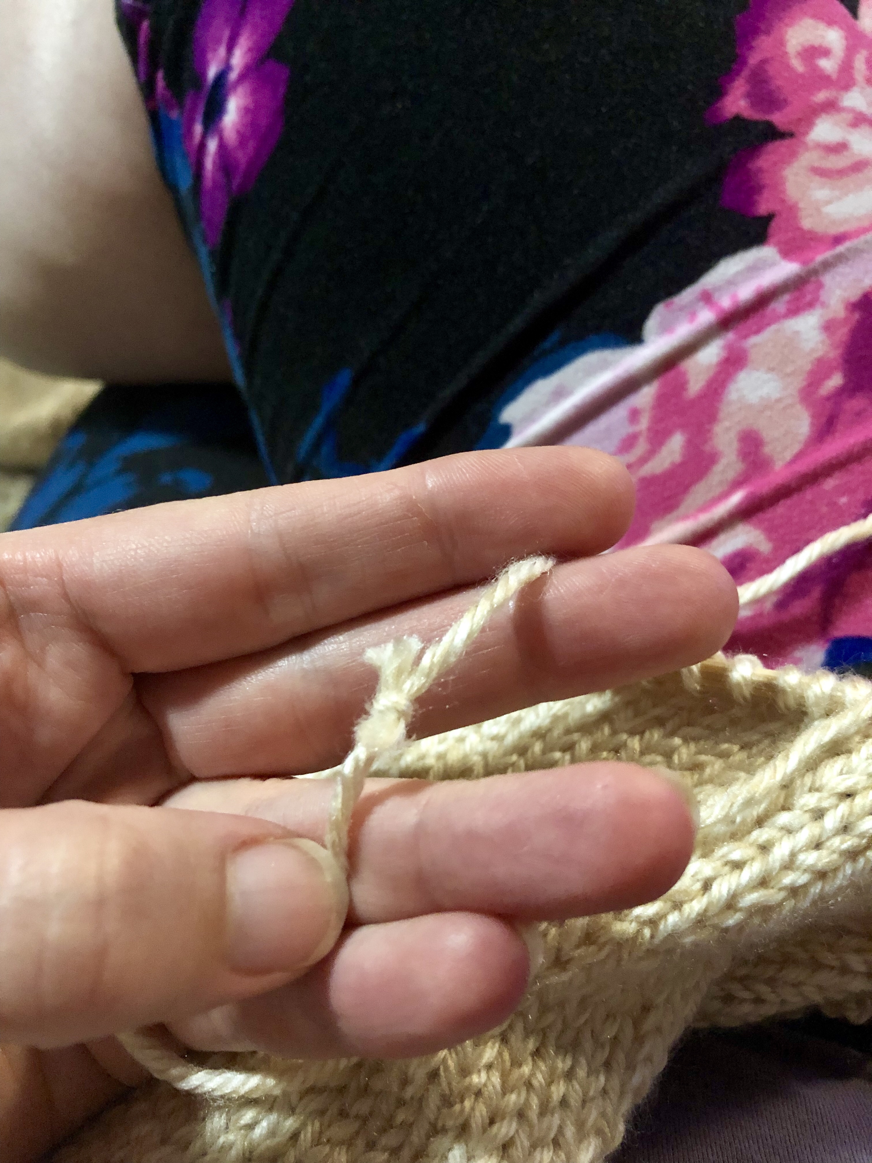 A knot in my skein! This is commercial yarn and I know up to two to three knots in a skein is considered normal. But I still hate them. If I knit them in I always seem to get the knot in a spot where I feel it or it works it way to right side of the work where everyone can see.