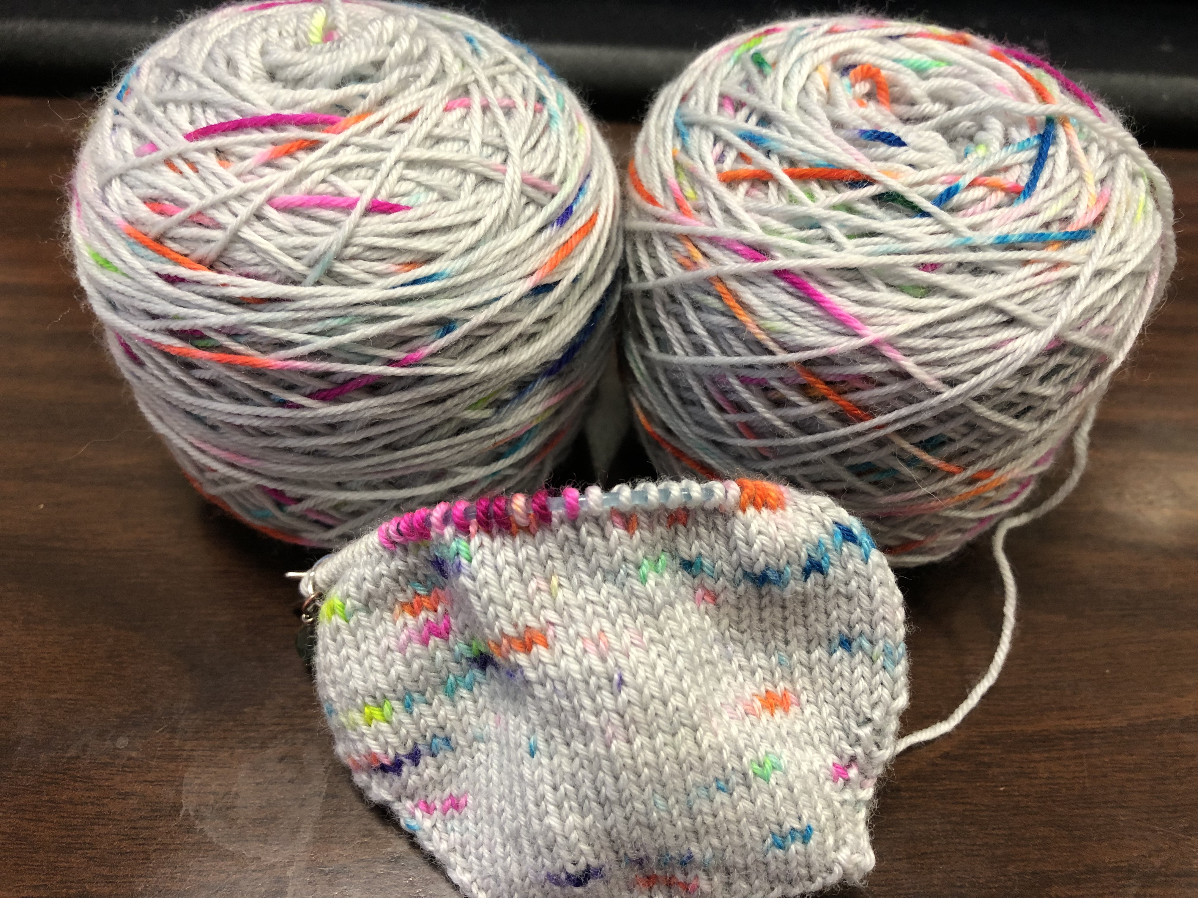 I totally didn’t gauge swatch so I am just winging it and following the medium size on this free pattern. I may regret this choice, but its not like DK yarn doesn’t knit up quickly into socks. I can always rip out and start over if the first one is small. And a plus side, I am going to try a new to me heel!