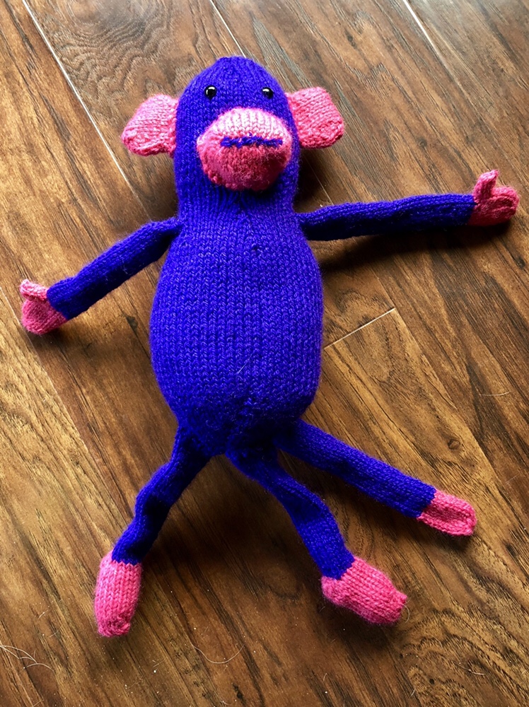 A little bit of heavy duty button hole thread, a needles and sock monkey was back to normal. Jellybean was impressed with my “magic” skills.