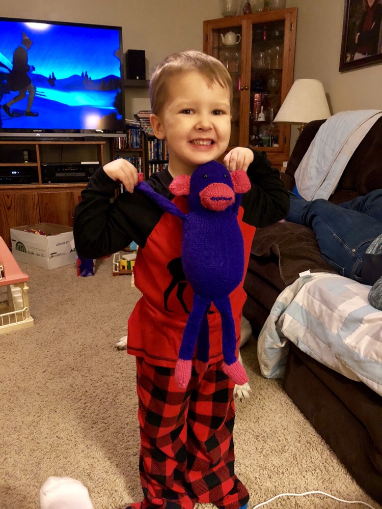 Jellybean got a little aggressive with dress up play and his favorite sock monkey suffered the consequences. His little hair didn’t fair well and there were tears. But no fear Mom to the rescue!!