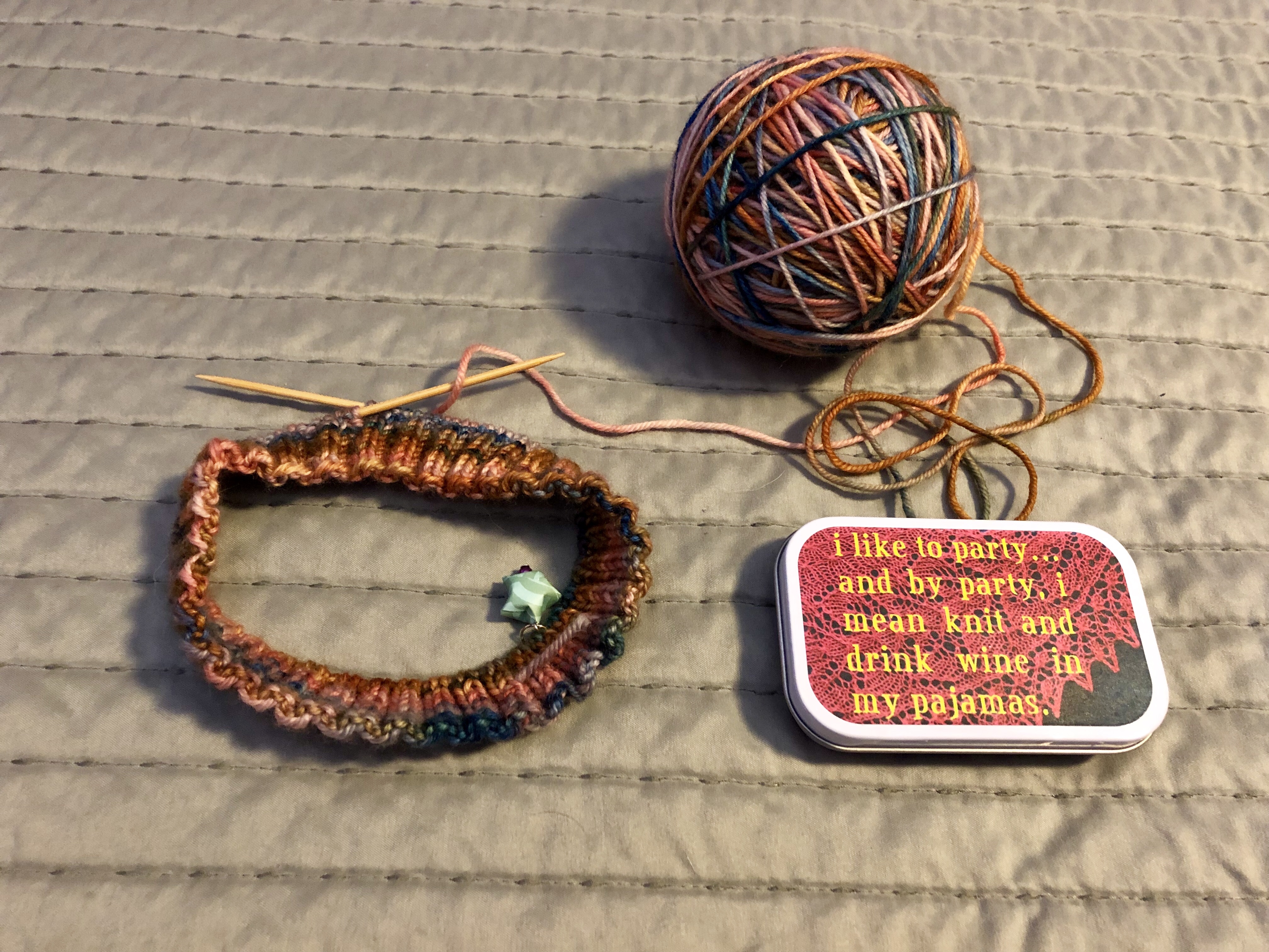 I got fed up and no shocker, I decided to finish my Prism Break Hat. I didn’t get to the pattern recommended length but I got to “good enough” and put the decreases in. I was ready to have a finished object, lol.