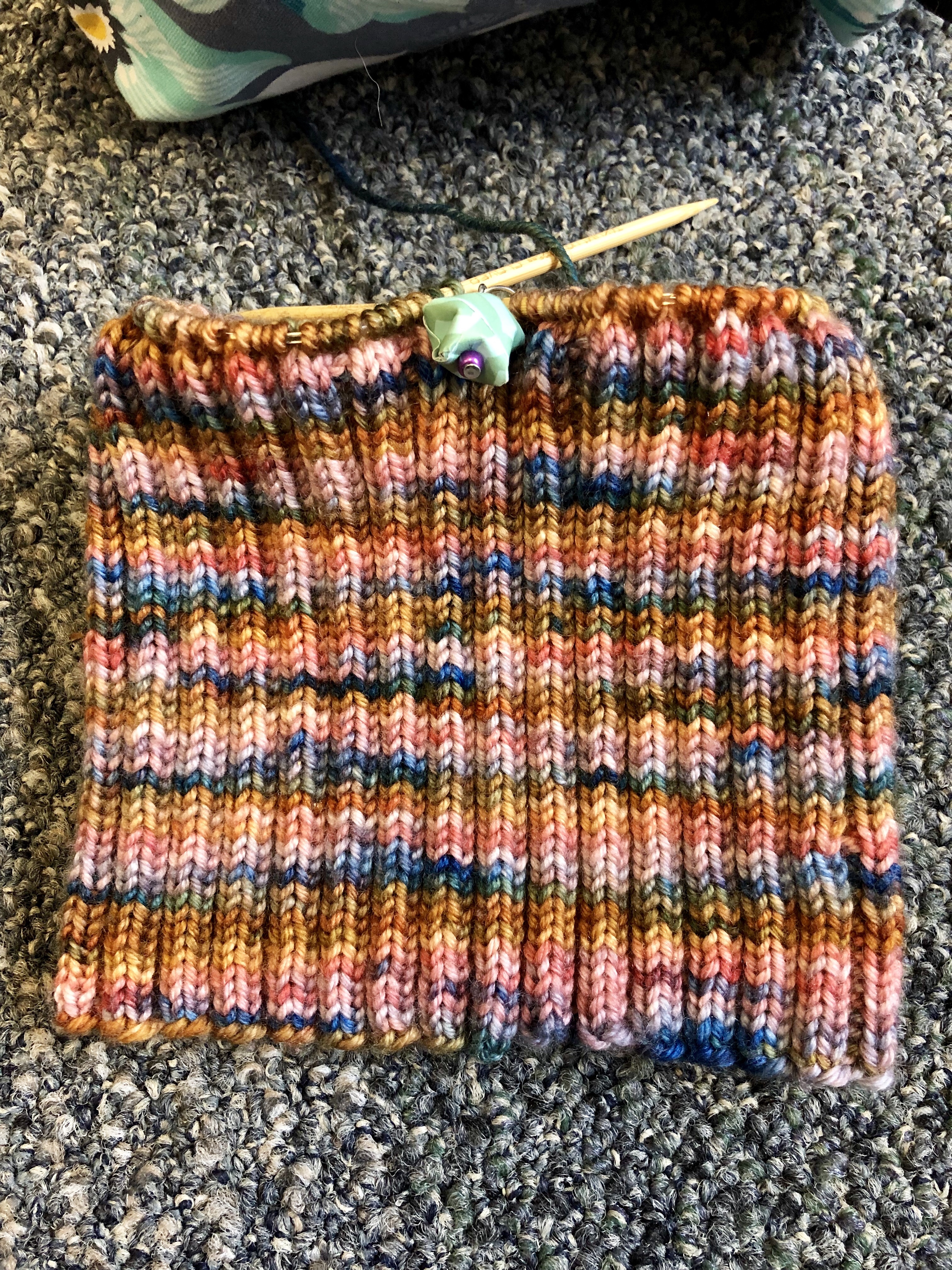 I am really pleased with how the colors pooled on this project. I got a really cool micro-stripe effect with the gauge I settled on. And the hat fits pretty nicely as well!