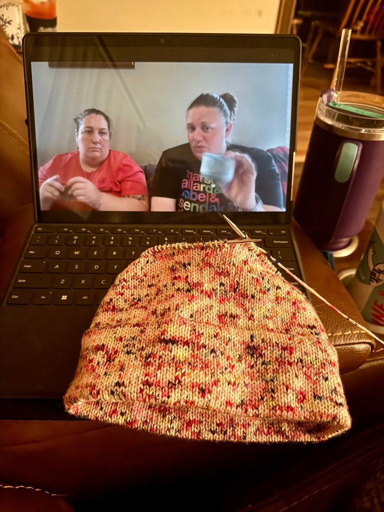 I am WOEFULLY behind on my KnitGirllls podcast, like months. So I camped out on the couch and stayed up way to late binging YouTube. The silver lining? My Sea Slug hat got quite a lot of knitting done on it.