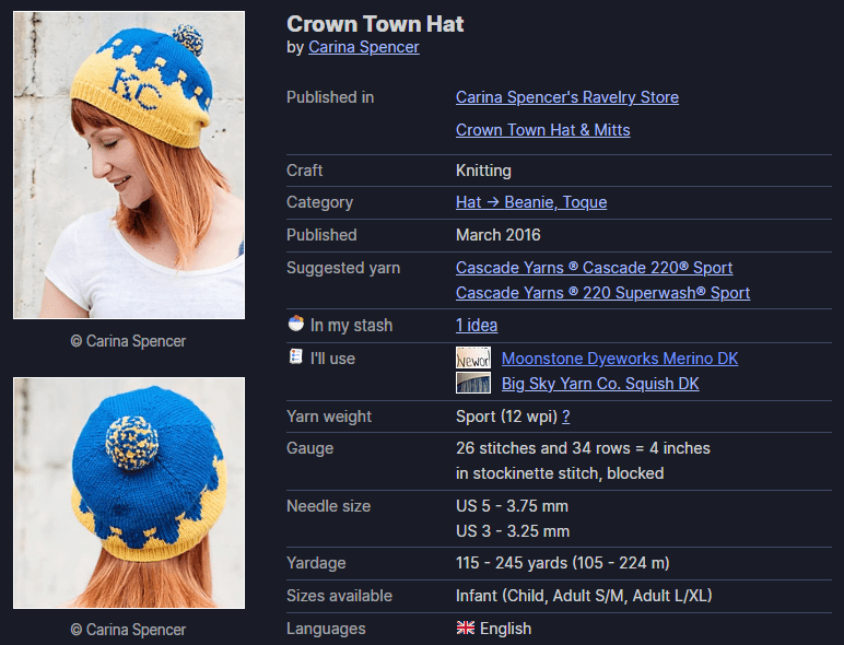 I really like how the designers worked in the crown into the colorwork. That is just genius. I do think I will omit the pom pom as they just aren’t my jam. I have already bought the pattern so I just need to print and then get my supplies ready for when the yarn gets here!