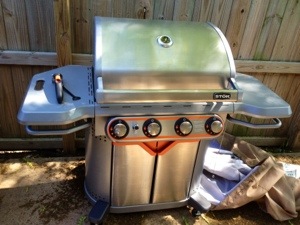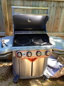 Our grill was a cheap $180 put together your self grill from when we first got married. The heat shields are rusted out. One auto ignite switch never worked. And the frame is badly in need of some spot welds. So my parents schemed and agreed to halfsies on a new grill for our wedding anniversary in June!