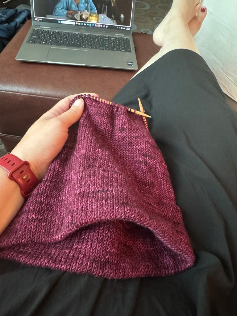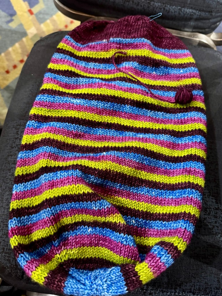 I am trying to dust off my WIPs to clear them out for the 2025 Pigskin Party KAL. No WIPs allowed in that. Today I pulled out the Crown Town Hat and installed the KC into the main body.
