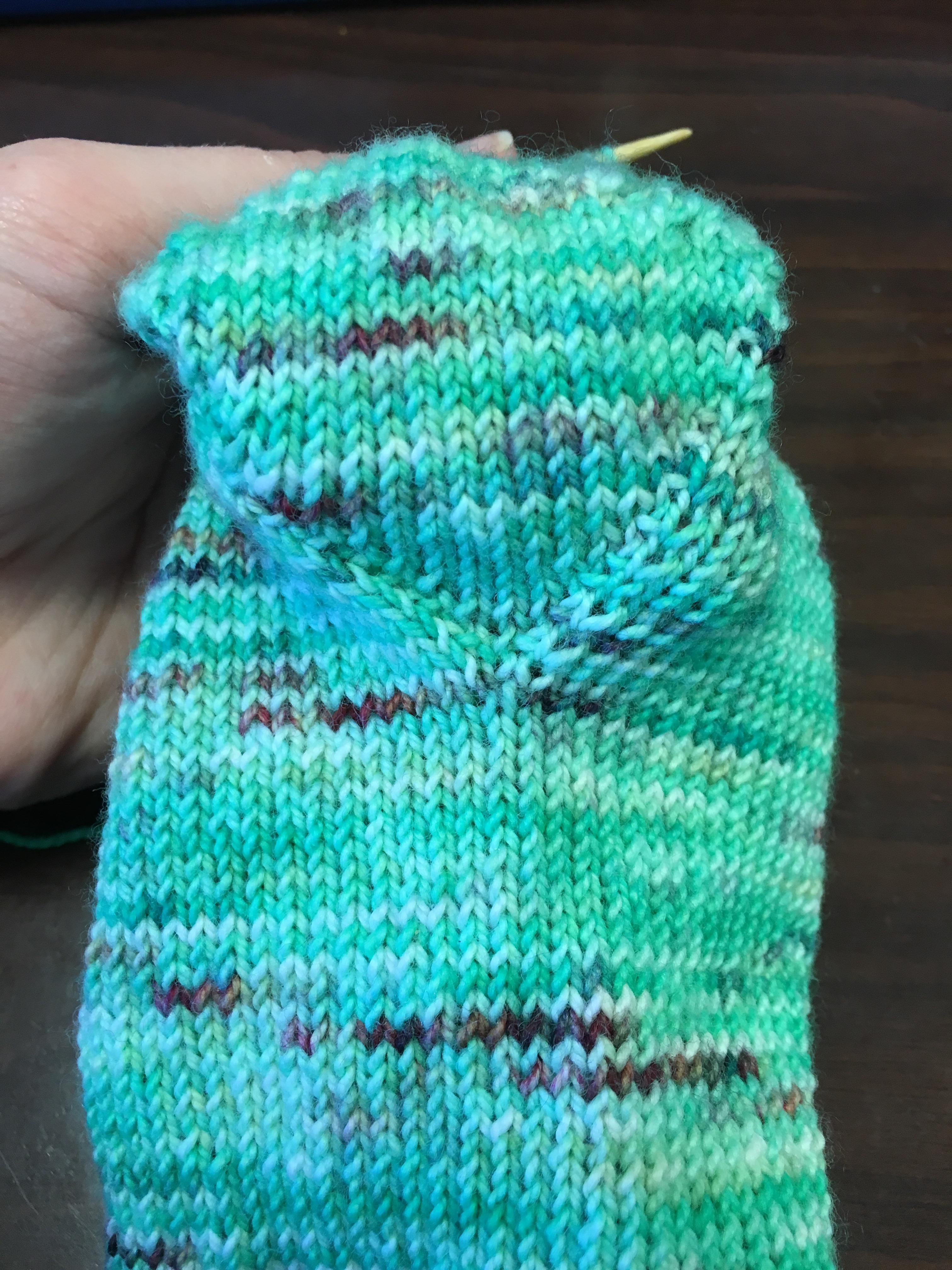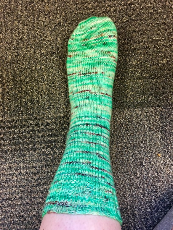 It’s not bothering me enough to rip and adjust the pattern. Mostly because I’ve never done the heel in this pattern before and a little because I don’t want to re-math. A tiny niggling part of my brain worries that these socks won’t wear as well as some others knit a tighter gauge.